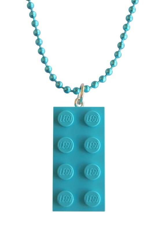 Turquoise Blue LEGO® brick 2x4 on a Gold plated trace chain (18" or 24")